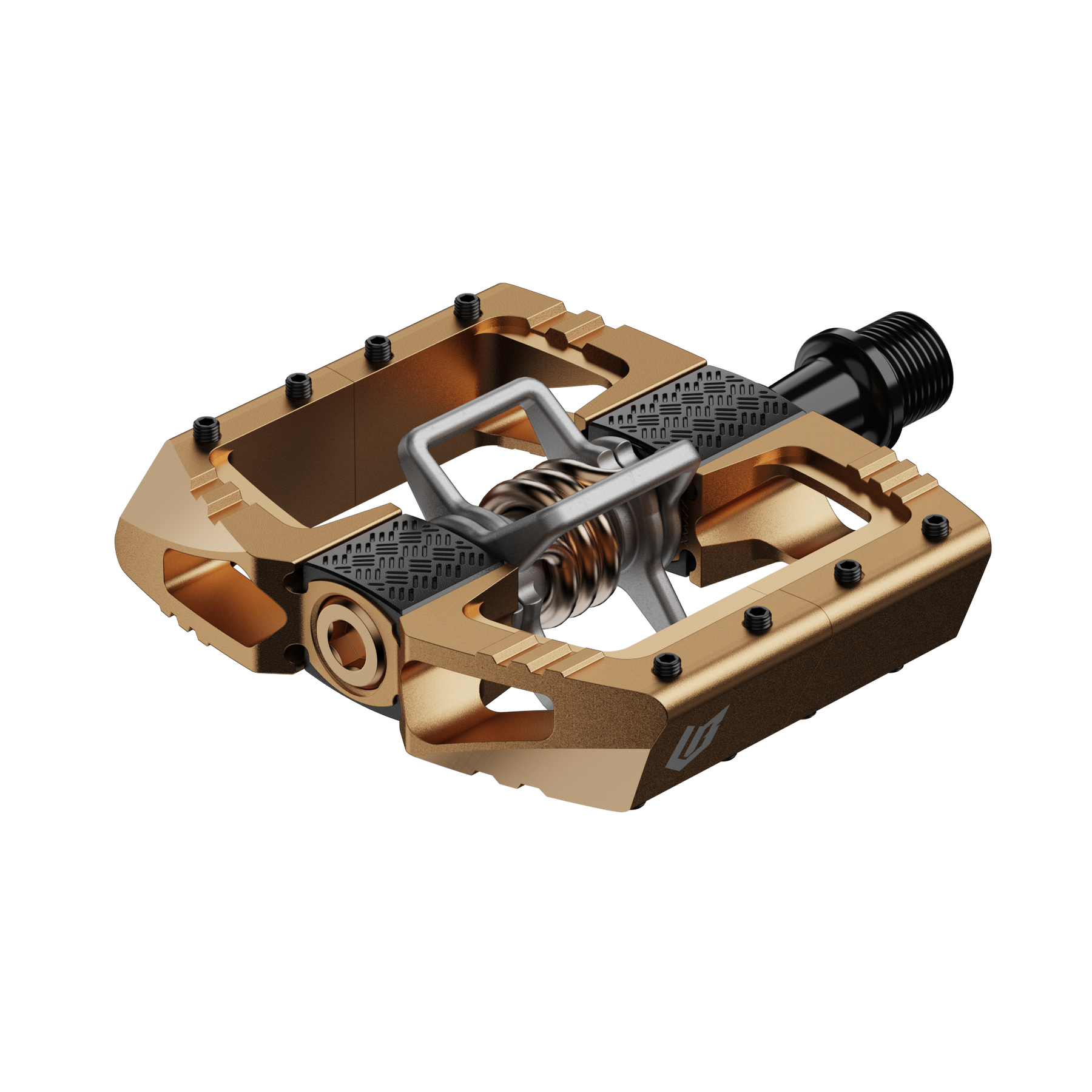 Loic Bruni's second signature version of our Mallet DH clip-in pedals have arrived, this time featuring anodized aluminum bodies, springs, and pins in a metallic bronze hue selected by Loic himself.